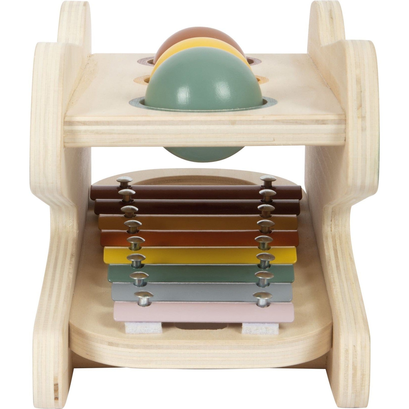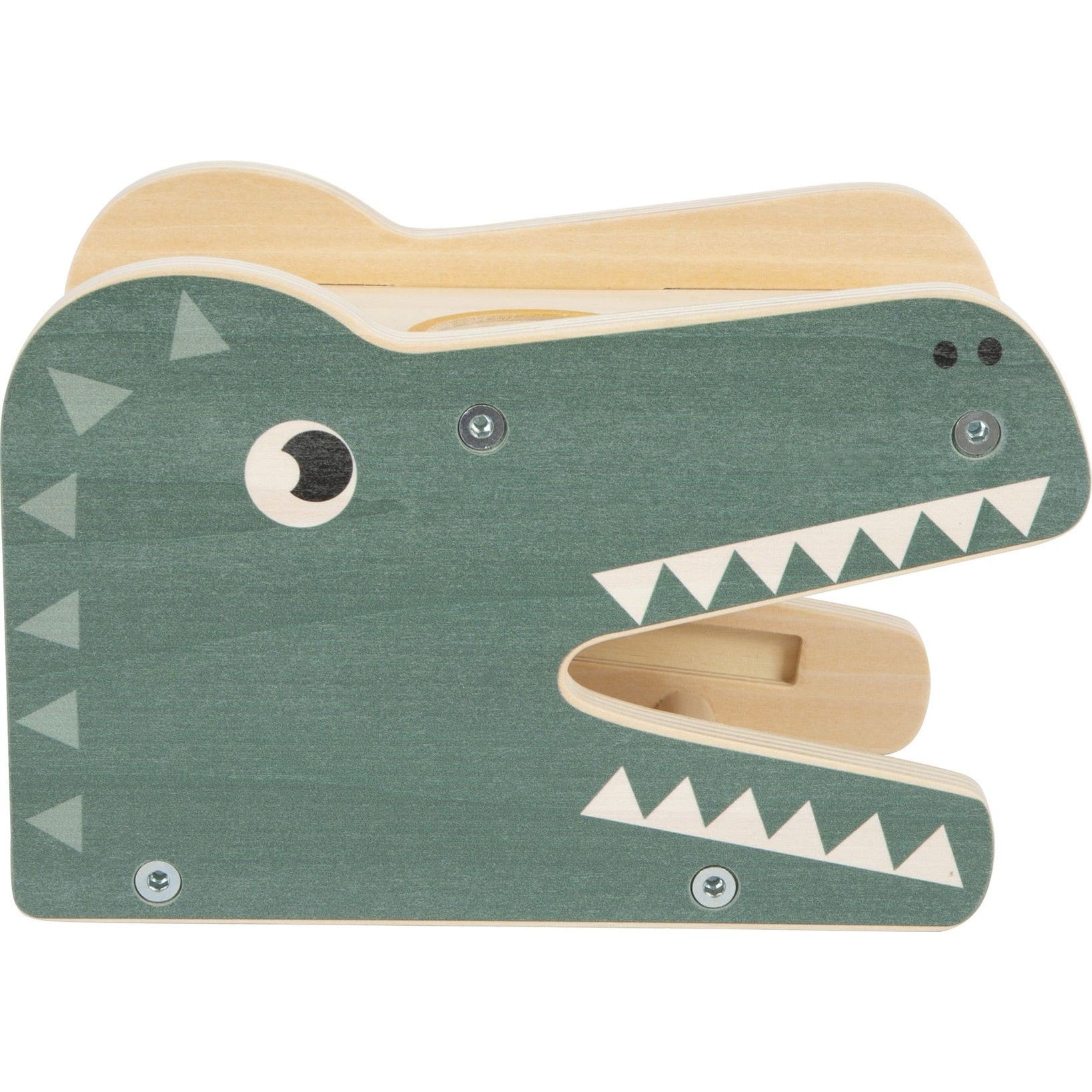 Klopf- und Klang-Spaß für die Kleinsten! Dieses niedliche Krokodil aus robustem Holz macht als Klopfspiel mit integriertem Xylophon gleich doppelt Spaß. Die drei Holzkugeln lassen sich mithilfe des Hammers durch die Öffnungen auf der Oberseite klopfen und erzeugen dabei auf dem darunter befindlichen Xylophon beim Herabrollen aufregende Klänge. Ein besonderer Clou: das kindgerechte Xylophon mit farbkodierten Klangstäben kann seitlich aus dem Klopfspiel entnommen und separat bespielt werden. Diese Klopfbank ist ein Krokodil und bietet den idealen Einstieg in die Welt der Klänge! Das Xylophon trainiert beim Musizieren neben der akustischen Wahrnehmung auch spielerisch Rhythmus- und Taktgefühl und ein erstes Verständnis für Töne und Tonleitern. Die Klopfbank schult die motorischen Fähigkeiten und vermittelt spielerisch das Prinzip von Ursache und Wirkung. Ein vielseitiger Motorikspaß mit Lern- und Aha-Effekt!