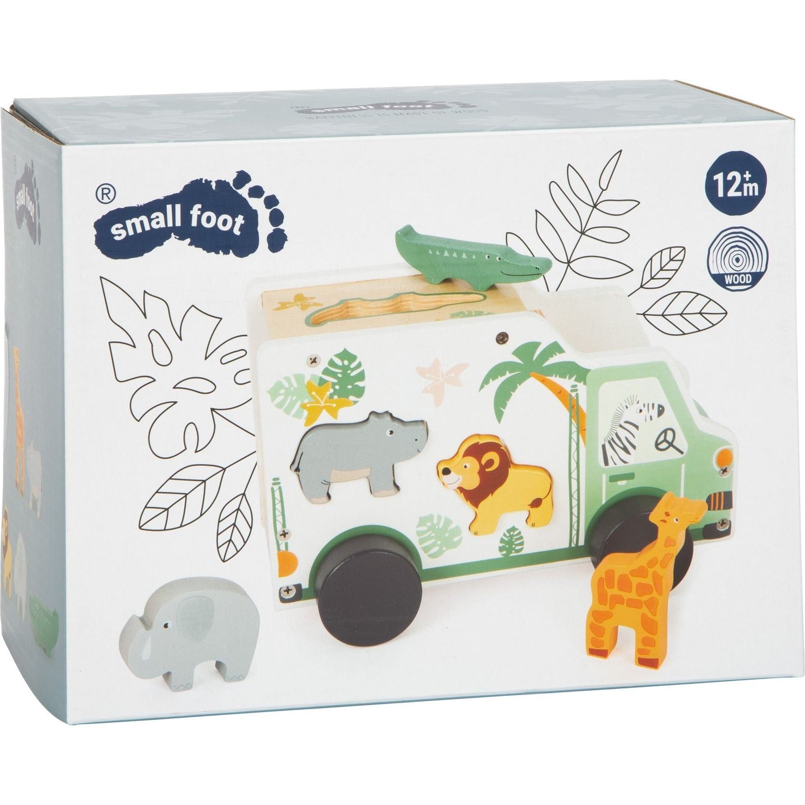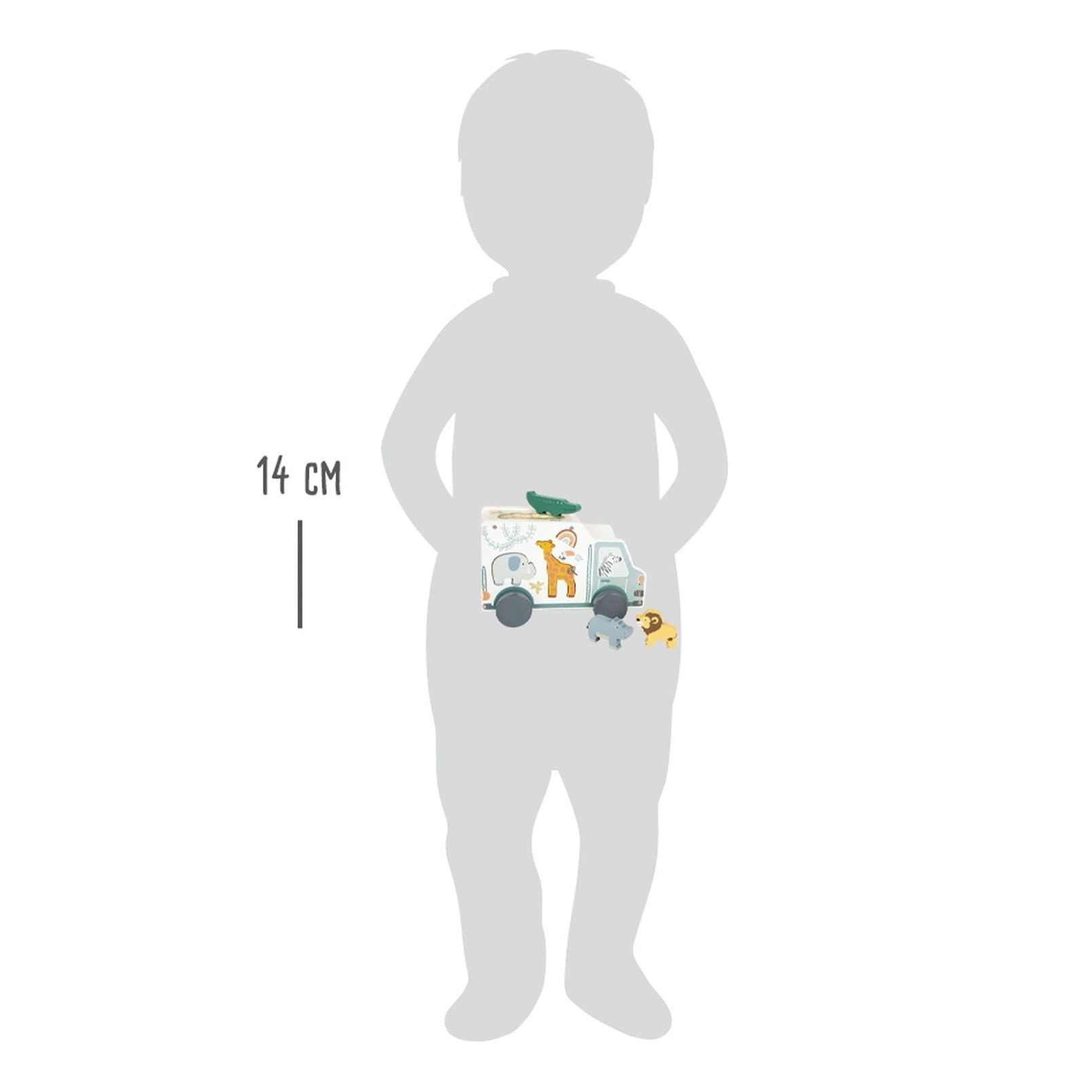 Steckspiel und Holzfahrzeug in einem! Bei diesem Steckspielzeug aus Holz im angesagten Safari-Look unternehmen Giraffe, Nilpferd, Löwe & Co. einen Ausflug in die Wildnis, während das freundliche Zebra das Holzfahrzeug fährt. Der Safaribus hat insgesamt fünf Stecköffnungen in Tierform, durch die die passenden Figuren gesteckt werden können. Ein liebevoll gestaltetes Fahrzeug, das spielerisch Formerkennung und motorische Fähigkeiten schult. Das Spielauto ist detailreich gestaltet und bietet ausreichend Platz für die niedlichen Holzfiguren. Für langanhaltenden und abwechslungsreichen Spielspaß im Kinderzimmer!