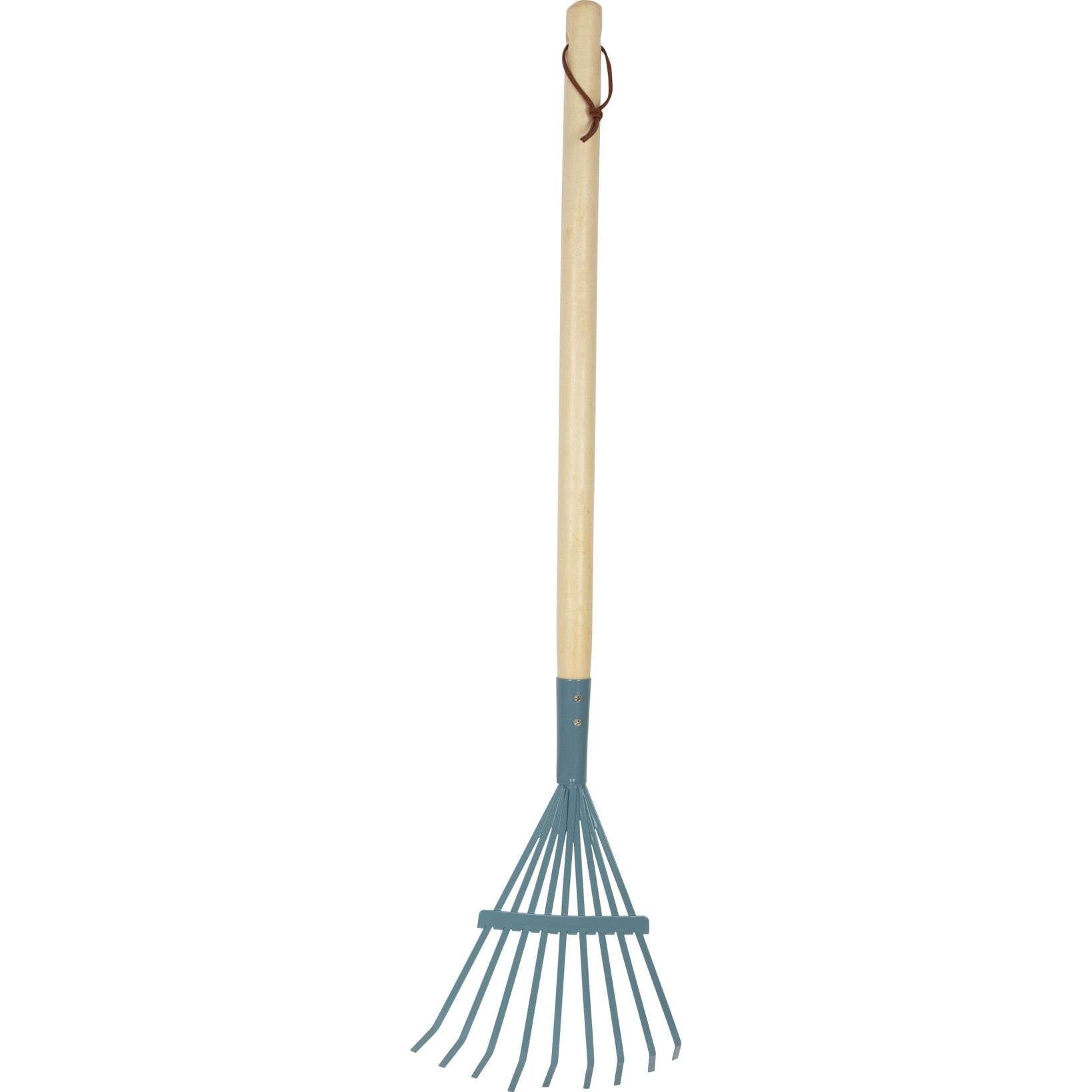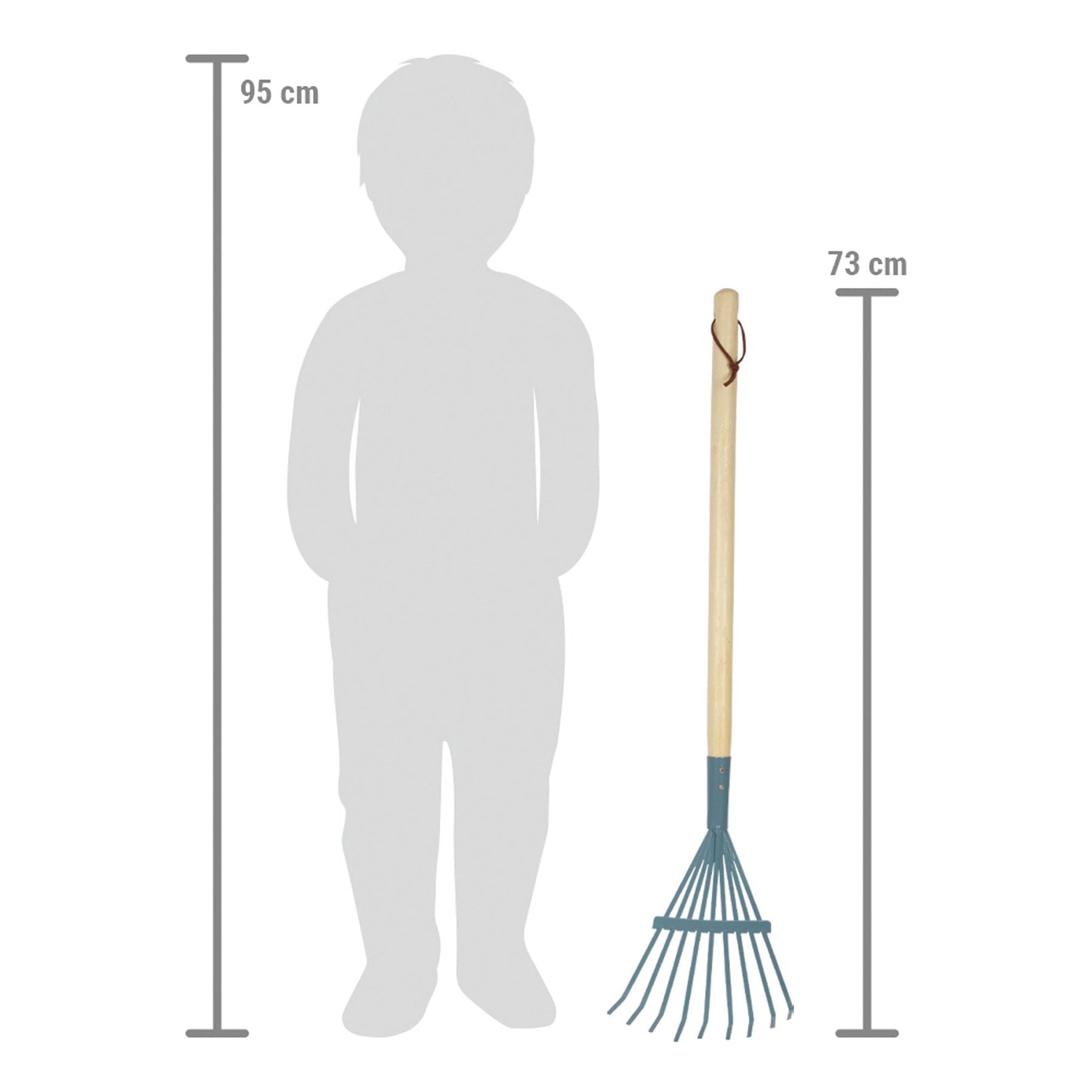 Raus in den Garten! Mit diesen Kinder-Laubrechen geht die Gartenarbeit leicht von der Hand. Die handlichen Rechen überzeugen durch Robustheit und eine ansprechende Optik. Rechen-Gewicht und der Stiel aus Holz sind perfekt auf die Bedürfnisse von Kindern abgestimmt. Mit dem stabilen Laubrechen aus Metall in modernem Rauchblau können kleine Hobby-Gärtner beim zusammenrechen von Blättern, Gras oder kleinen Zweigen unterstützen. Nach getaner Arbeit können die Rechen aus robustem Holz und Metall an den praktischen Schlaufen ordentlich aufgehängt werden. Die Gartenarbeit ruft! Mit diesen Rechen können Kinder ihre Eltern super bei der Gartenarbeit unterstützen. Ein echtes „Muss“ für alle kleinen Gartenhelfer und auch als Sandspielzeug für das Spielen im Sandkasten oder am Strand ideal geeignet. Perfektes Garten-Tool für die Draußen-Saison!