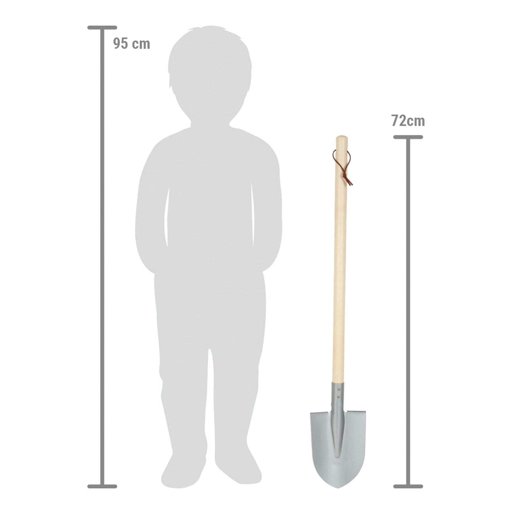 An die Schaufel, fertig, los! Diese Kinder-Schaufeln sind die perfekten Werkzeuge für Sandkasten, Garten oder Strand. Beim Löcher graben und Burgen bauen überzeugen sie durch Robustheit und ansprechende Optik. Schaufel-Gewicht und der Stiel aus Holz sind perfekt auf die Bedürfnisse von Kindern abgestimmt. Mit dem stabilen Schaufelkopf aus Metall in modernem Grau machen die Schaufeln jederzeit eine gute Figur. Nach getaner Arbeit können die Schaufeln aus robustem Holz und Metall an den praktischen Schlaufen ordentlich aufgehängt werden. Die Gartenarbeit ruft! Mit diesen Schaufeln können Kinder ihre Eltern super bei der Gartenarbeit unterstützen. Ein echtes „Muss“ für alle kleinen Gartenhelfer und auch als Sandspielzeug für das Spielen im Sandkasten oder am Strand ideal geeignet. Perfektes Garten-Tool für die Draußen-Saison!