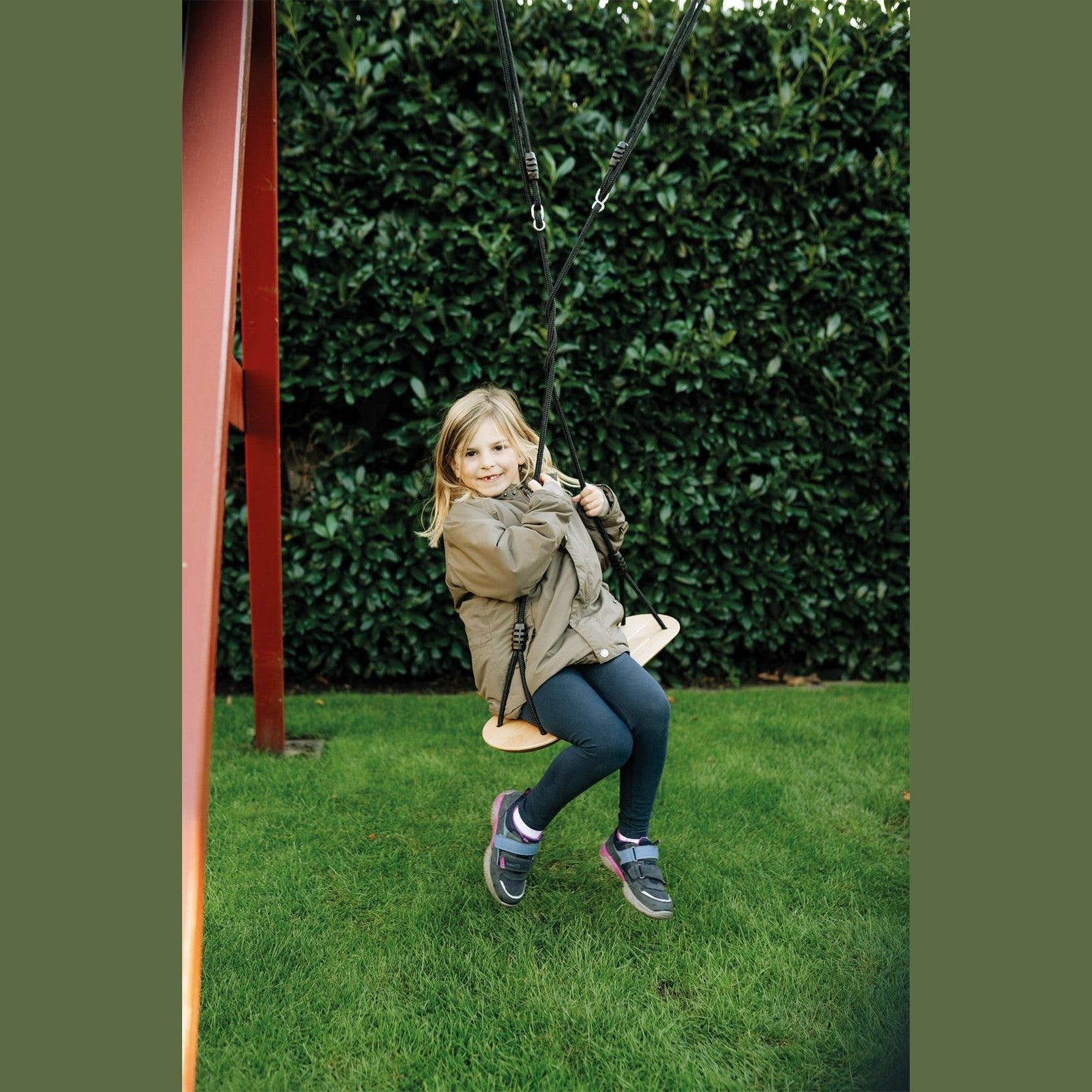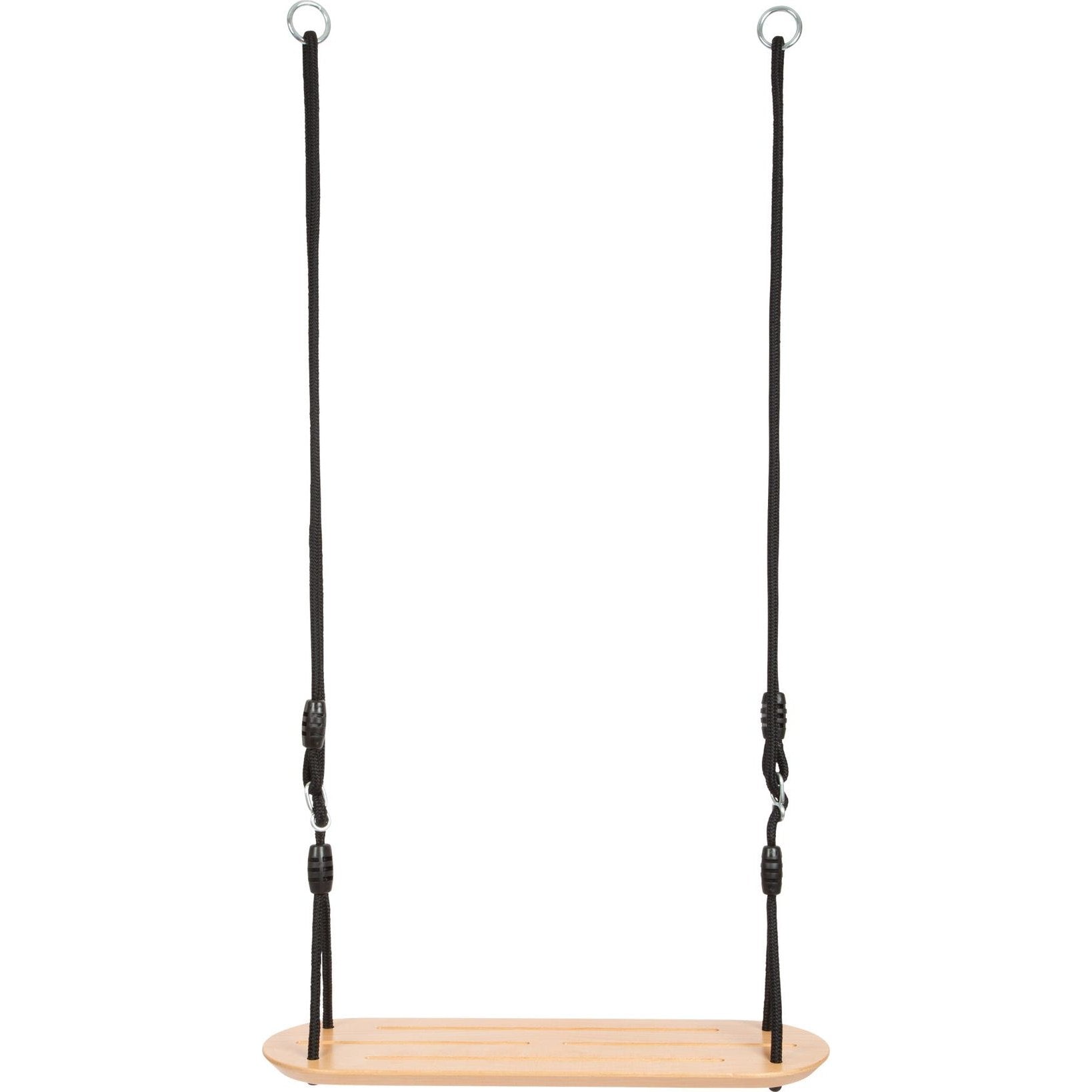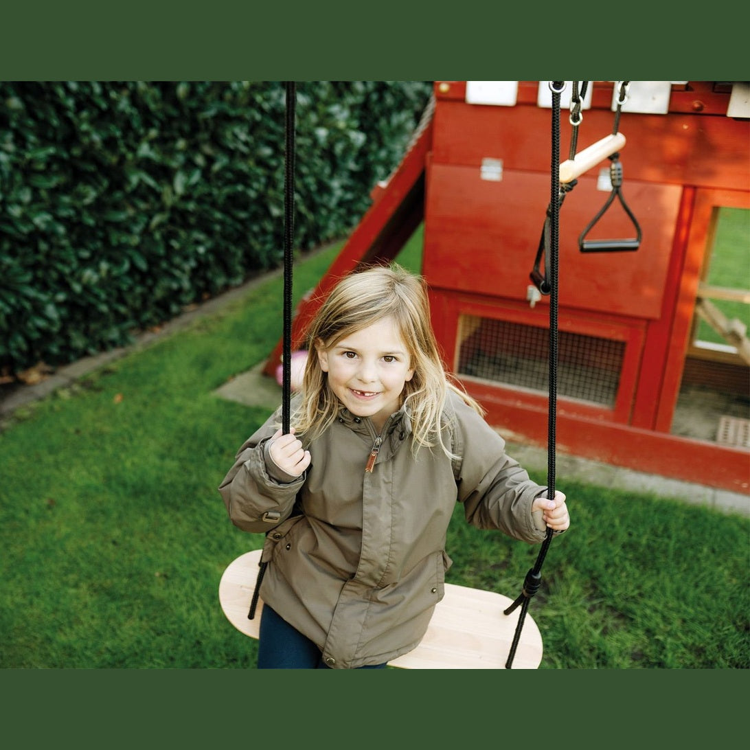 Auf geht’s in luftige Höhen! Diese breite Brettschaukel aus massivem Vollholz ist der absolute Klassiker unter den Schaukeln, der dank naturfarbenem, lasiertem Holz in Kombination mit schwarzen Seilen durch einen hochwertigen Look hervorsticht. Mit längenverstellbaren Seilen und Metallringen für ein schnelles Auf- und Abhängen der witterungsbeständigen Schaukel im In- und Outdoor-Bereich. Durch die große Sitzfläche auch für Erwachsene optimal geeignet. Wer schaukelt am höchsten? Maximaler Schaukelspaß für Groß und Klein, der neben Kraft und Körperbeherrschung auch Geschicklichkeit und Balance trainiert. Rillen auf der Sitzfläche geben der hochwertigen Schaukel Rutschfestigkeit.