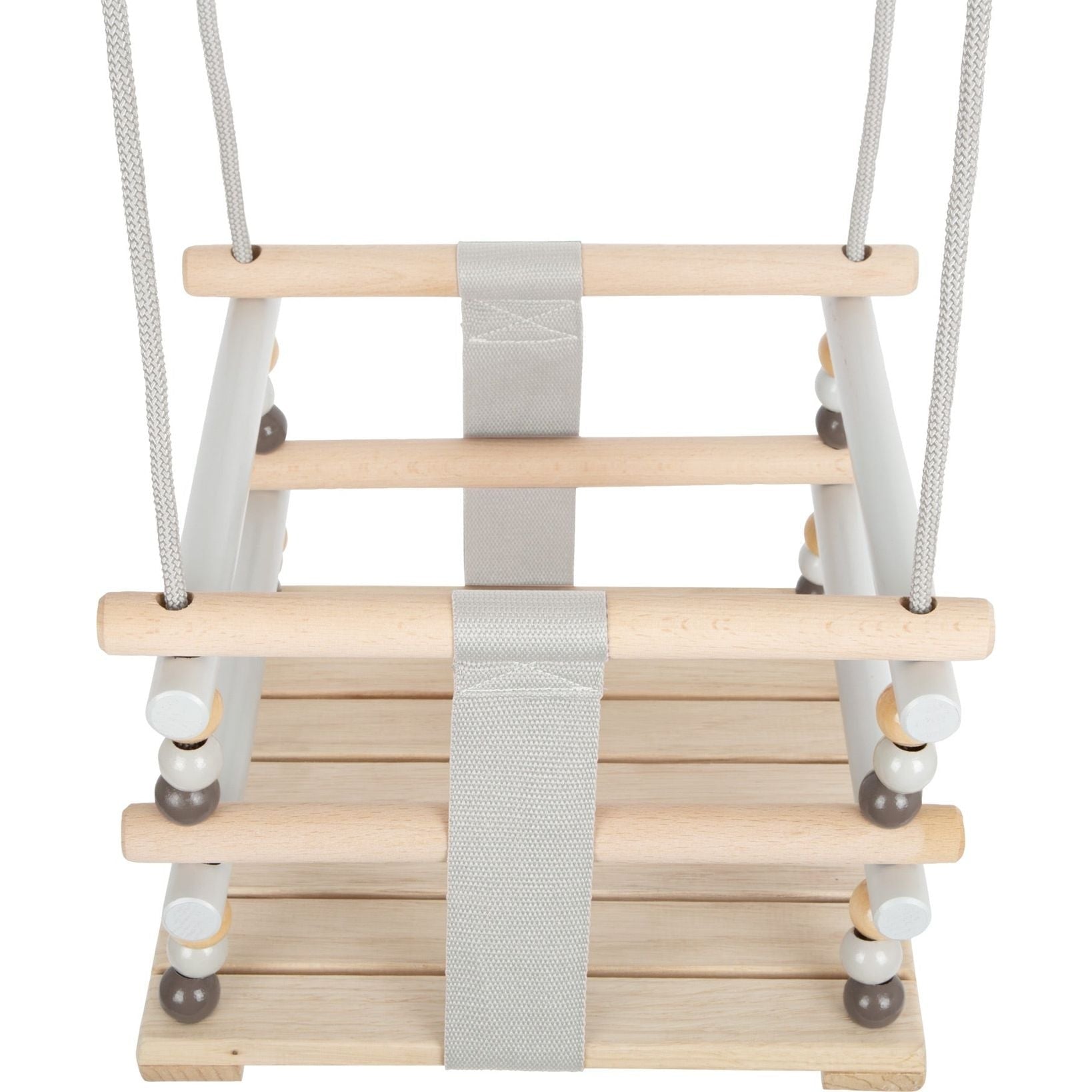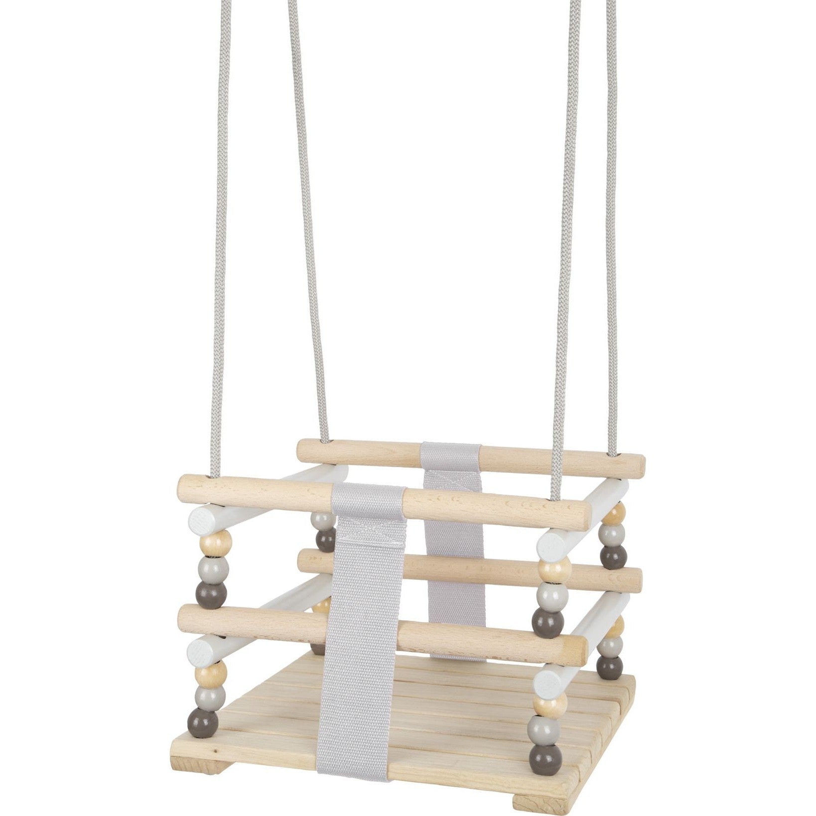 Diese Gitterschaukel im reduzierten, skandinavischen Stil verspricht Babys und Kleinkindern jede Menge Schaukelspaß. Ein Maximum an Sicherheit gewähren dabei die vier geschlossenen Seiten und zwei reißfeste Gurte. Dank schlichtem Grau und viel naturbelassenem, handschmeichlerischem Holz macht die Schaukel drinnen wie draußen auch optisch eine gute Figur. Ein absoluter Schaukelklassiker für die Jüngsten im modernen Look!