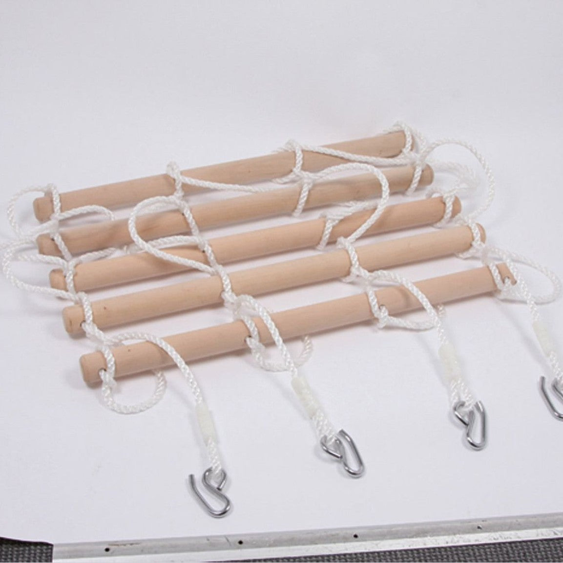 Eine Herausforderung für kleine Kletterkünstler! An vier stabilen Seilen sind fünf Holzstangen (68 x 4 cm) sicher befestigt und laden ein zur Schulung von Körperbeherrschung und Kraft! Auch als breite Strickleiter ist die Kletterwand geeignet und ermöglicht so bequeme Aufstiege in luftige Höhen!