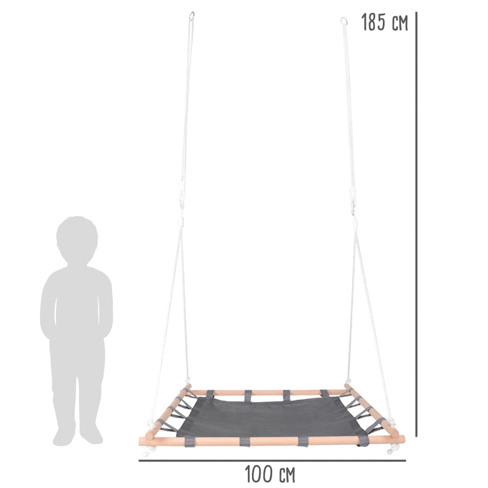 Schaukelspaß im Quadrat! Diese quadratische Nestschaukel im modernen Design ist mit ihrem stabilen Rahmen aus naturbelassenem Holz ein Hingucker! Die große, bequeme Schaukelfläche aus strapazierfähigem und leicht zu reinigendem Material bietet mehreren Kindern ausreichend Platz zum Schaukeln, Toben und Relaxen. Alle können mit drauf, solange der Platz im Nest reicht! Nestschaukeln laden dazu ein, in einem Moment so richtig zu entspannen und im nächsten Moment richtig Spaß zu haben. Vom ruhigen Vor- und Zurückschwingen bis hin zum Höhenflug ist alles erlaubt. Holz als nachhaltiges Material macht auch hierbei eine gute Figur!