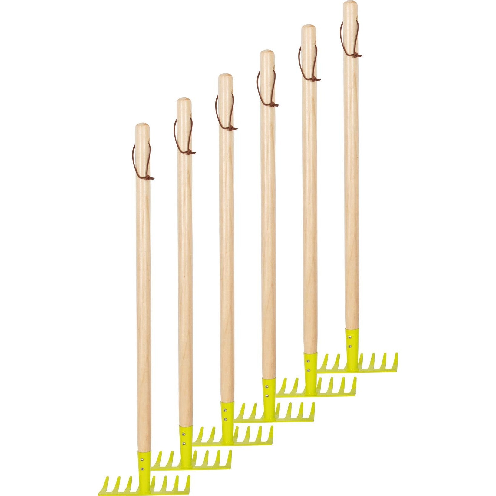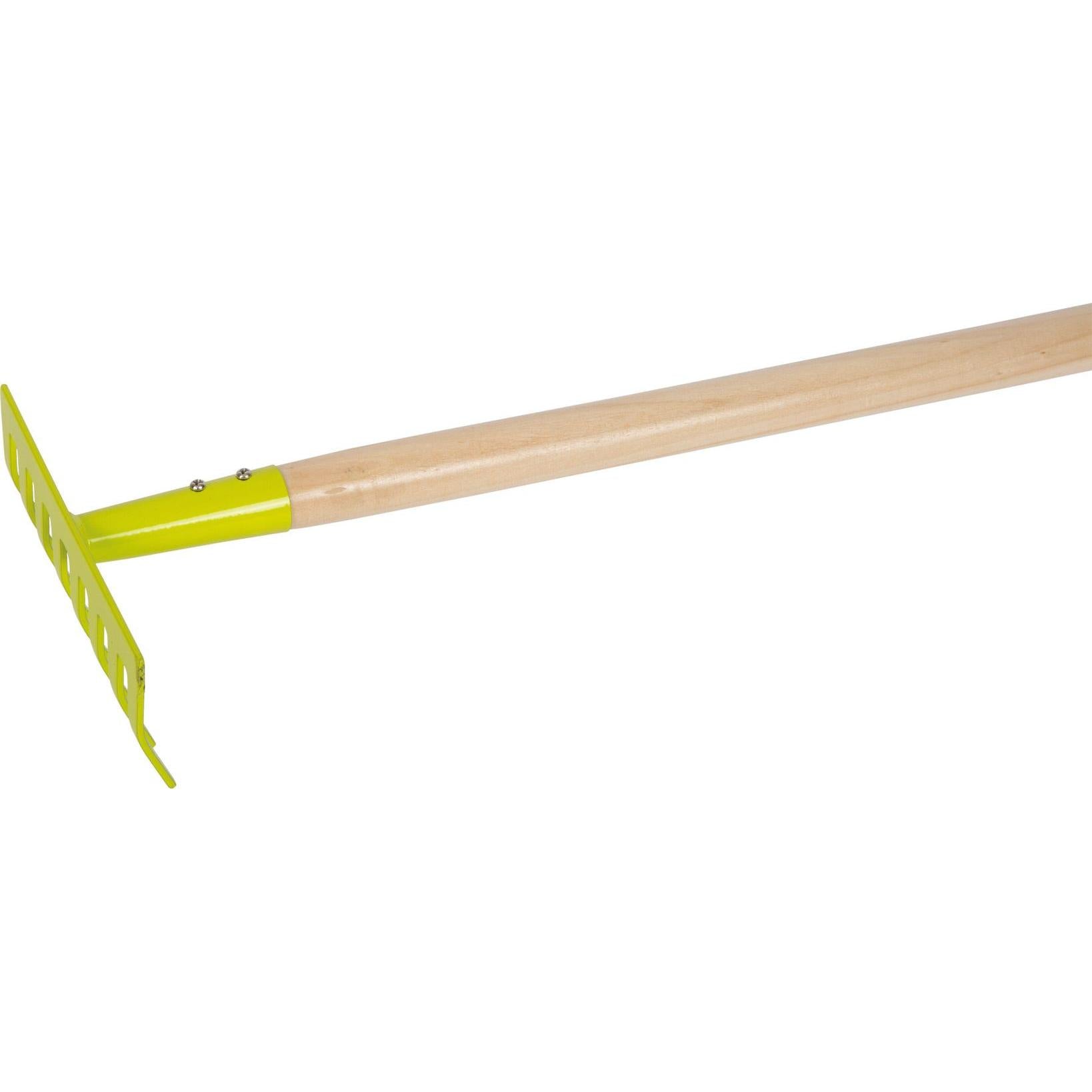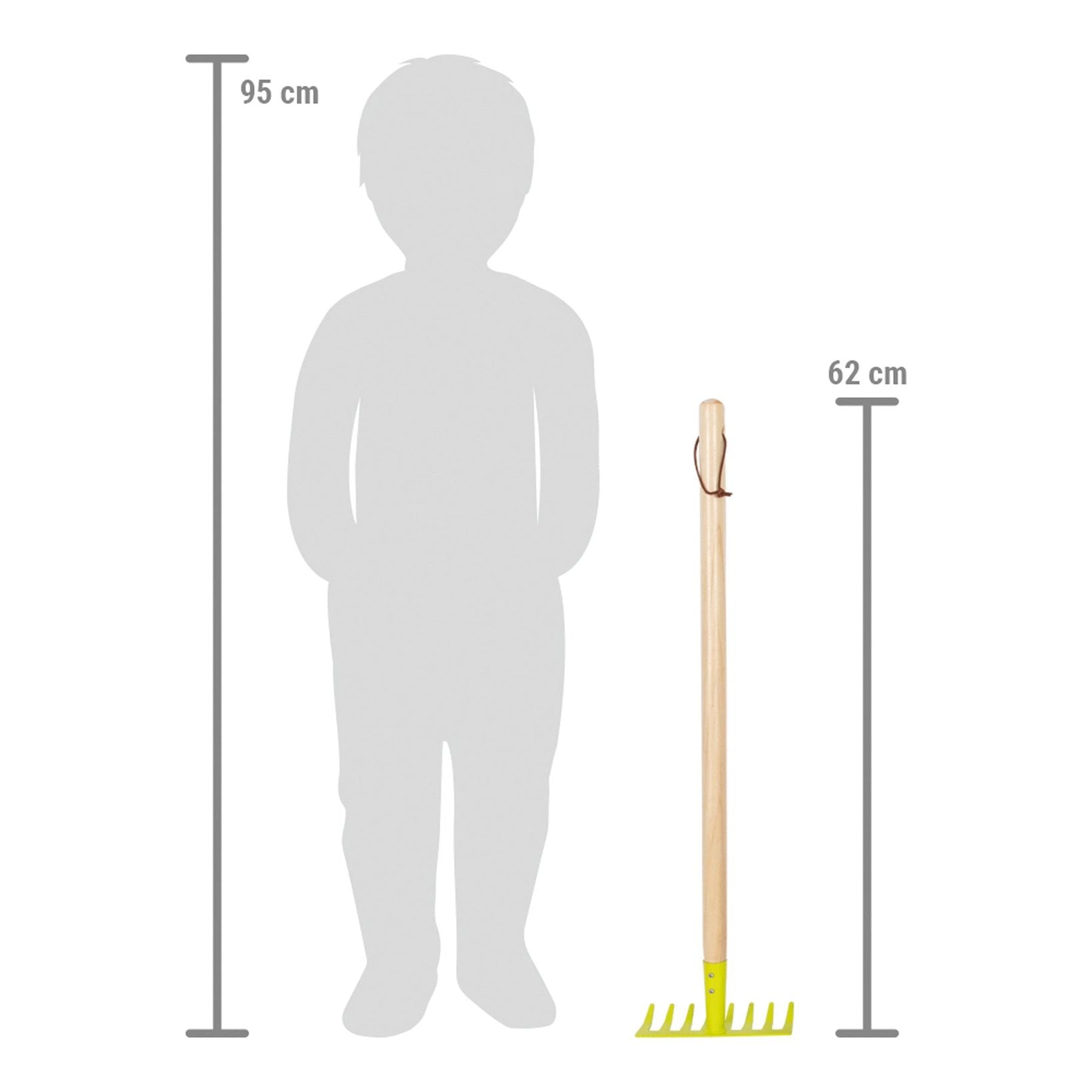 Jetzt wird geharkt! Mit diesen Kinder-Harken geht die Gartenarbeit schon den Jüngsten leicht von der Hand. Blätter harken, Beete richten – alles kein Problem! Harken-Gewicht und der Stiel aus Holz sind perfekt auf die Bedürfnisse von Kindern abgestimmt. Mit dem stabilen Kopf der Harke aus Metall in frischem Grün macht Gartenarbeit richtig Spaß. Nach getaner Arbeit können die Harken aus robustem Holz und Metall an den praktischen Schlaufen ordentlich aufgehängt werden. Die Gartenarbeit ruft! Mit diesen Harken können Kinder ihre Eltern super bei der Gartenarbeit unterstützen. Ein echtes „Muss“ für alle kleinen Gartenhelfer und auch als Sandspielzeug für das Spielen im Sandkasten oder am Strand ideal geeignet. Perfektes Garten-Tool für die Draußen-Saison!