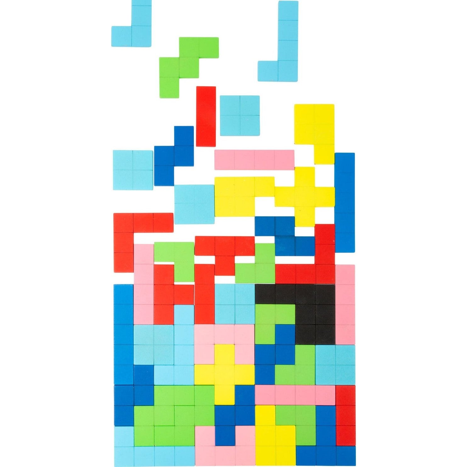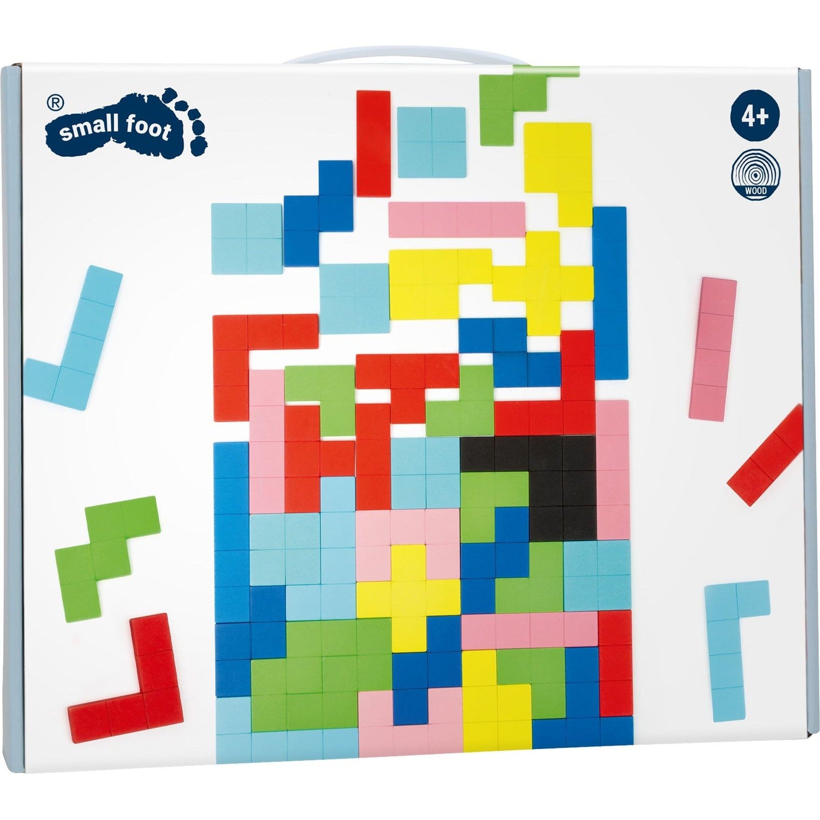 Dieses 114-teilige Spiel-Set aus Holz bietet unendliche Spielmöglichkeiten. Angelehnt an einen weltweit bekannten und beliebten Computerspiel-Klassiker gilt es, verschiedene geometrische Muster zu puzzeln. Dabei können mit den unterschiedlichen Spielsteinen bunte und individuelle Mosaik-Flächen in unzähligen Kombinationsmöglichkeiten gelegt werden. Dieses Lernspiel fördert feinmotorische Fähigkeiten und regt die Phantasie an. Zudem trainiert es die Farb- und Formerkennung sowie Problemlösungsfähigkeiten der Kinder.