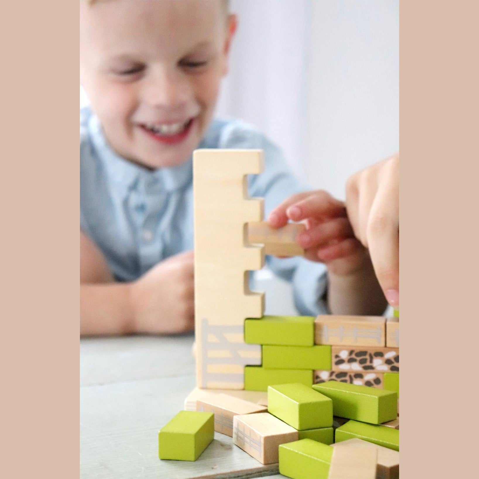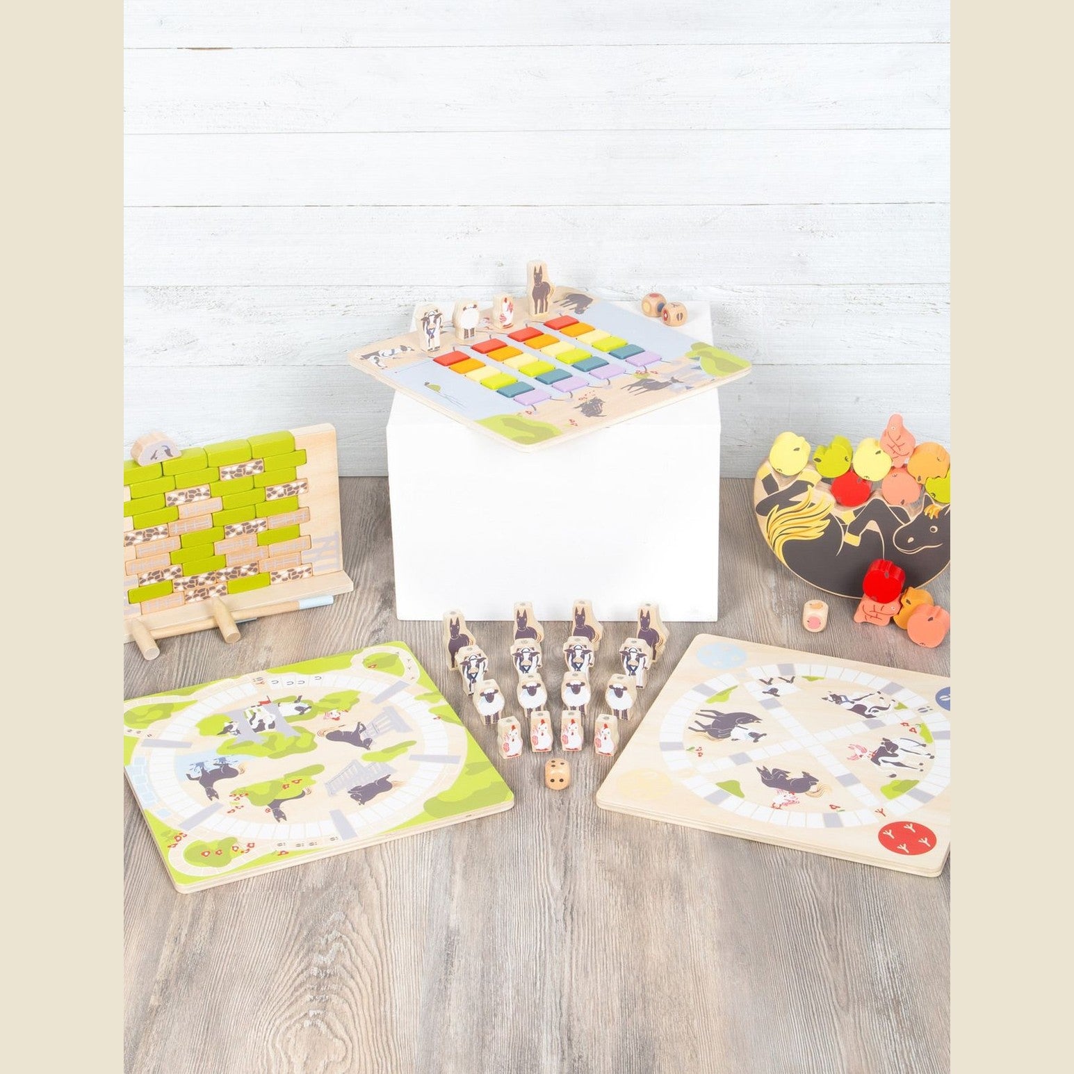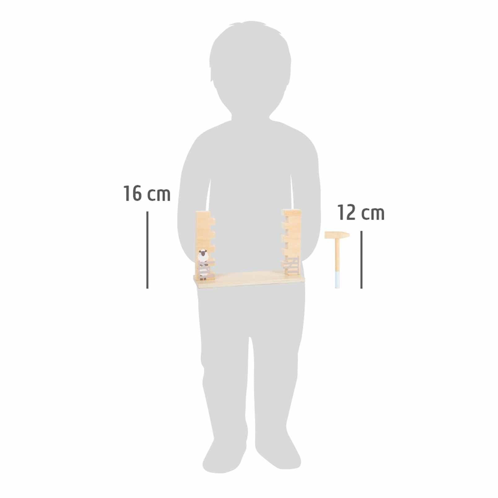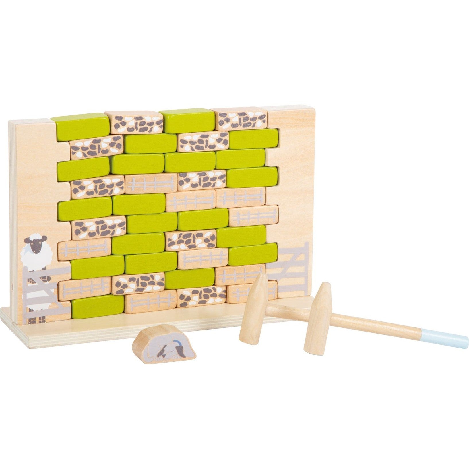 Wackelspaß am Weidezaun! Das Schaf "Schippi" und seine Freunde wollen das Land auf der anderen Seite des Zaunes unsicher machen und so gilt es, mithilfe der zwei handlichen Holzhammer ein Loch in den "Zaun" der Weide zu klopfen. Damit die Wackelmauer nicht zusammenbricht, sind Konzentration und Geschick gefragt. Aber Achtung: wenn die Mauer einstürzt, wacht der Hütehund oben auf der Mauer auf und das Spiel ist verloren! Mit hochwertigem Spielkarton zur dauerhaften Aufbewahrung. Das Gesellschaftsspiel kann alleine oder in der Gruppe gespielt werden und überzeugt durch ein besonders kindgerechtes Design und durch einen hohen sichtbaren Naturholzanteil. Dabei animiert die Wackelmauer immer wieder zu neuen Runden und verspricht langen Spielspaß. Wer entfernt den ersten Stein aus der Mauer?