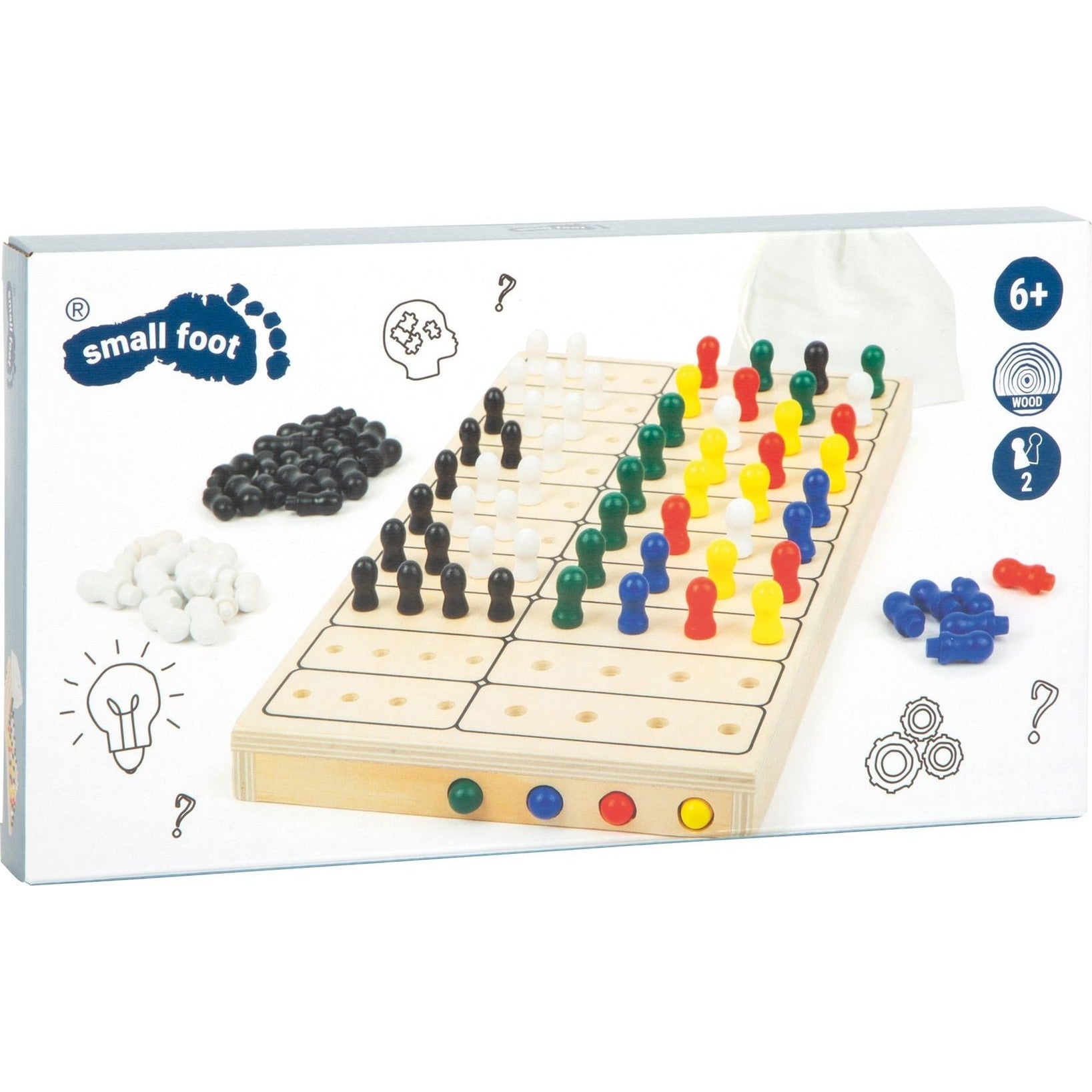 Der Klassiker unter den Logikspielen! Hier werden Geschicklichkeit und logisches Denken gleichermaßen gefordert. Bei dem Spiel für zwei Personen gilt es, den vom Mitspieler festgelegten vierstelligen Farbcode möglichst schnell zu entschlüsseln. Die Rateversuche werden dabei übersichtlich mit farbigen und schwarz-weißen Spielfiguren auf dem Brett dokumentiert. Wenn der Geheimcode entschlüsselt ist, können die Figuren ganz einfach im beigefügten Stoffbeutel verstaut werden. Ein spannendes Rätselspiel, bei dem den Mitspielern viel Konzentration und Gedächtnisleistung abverlangt werden.
