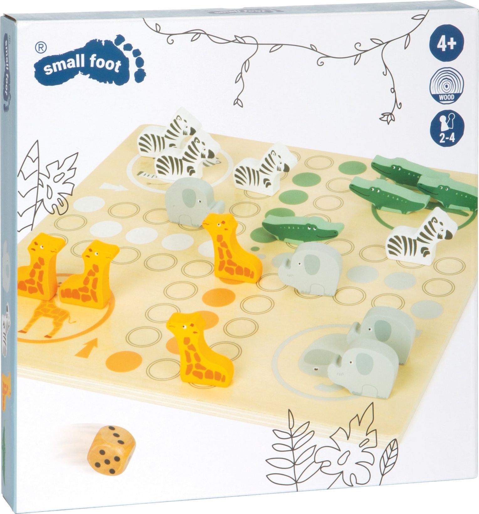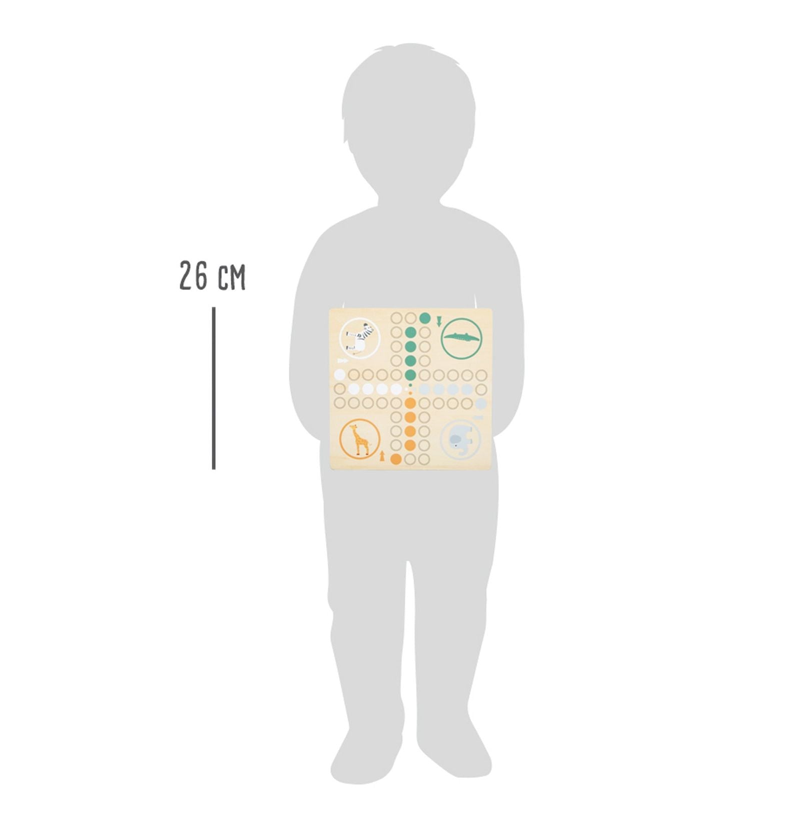 Safari-Feeling auf dem Spielbrett! Bei diesem Ludospiel aus Holz geht es darum, seine Steppen-Tiere als erstes ins „Häuschen“ zu bringen. Der extra große Würfel gibt an, um wie viele Felder die eigene Spielfigur vorwärts gehen darf. Die Spielfiguren Zebra, Giraffe, Krokodil und Elefant sind detailgetreu und kindgerecht gestaltet. Durch die Augenzahl auf dem Würfel lernen Kinder spielerisch das Zählen. Ein klassisches Ludo im trendigen Design und kompakten Format. Das tierische Gesellschaftsspiel, bei dem fröhliche Tierchen Kindern das Gewinnen und Verlieren gleichermaßen versüßen. Ein Must-Have in der Spiele-Kiste!