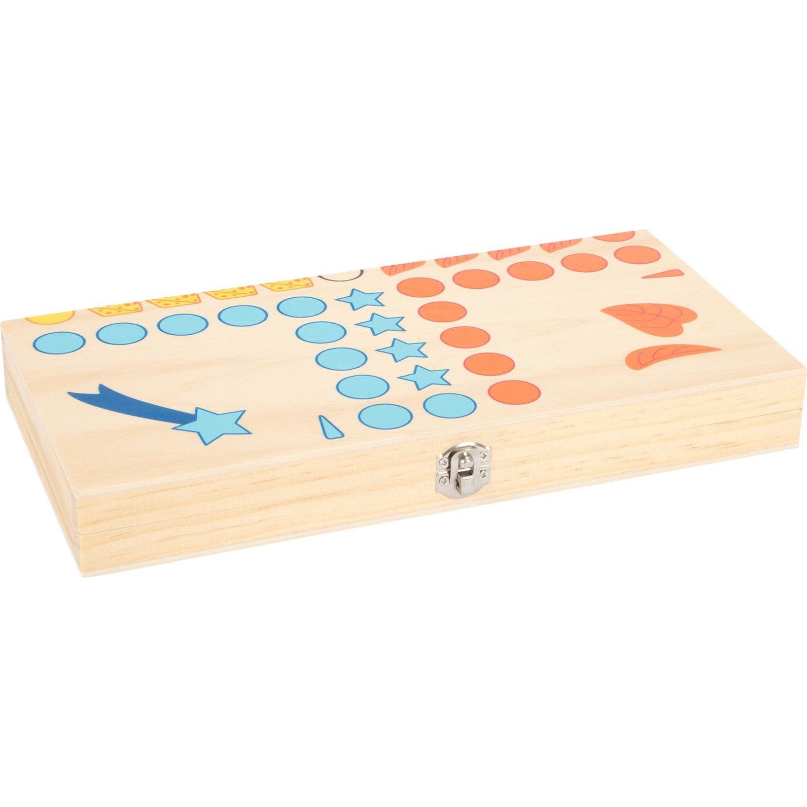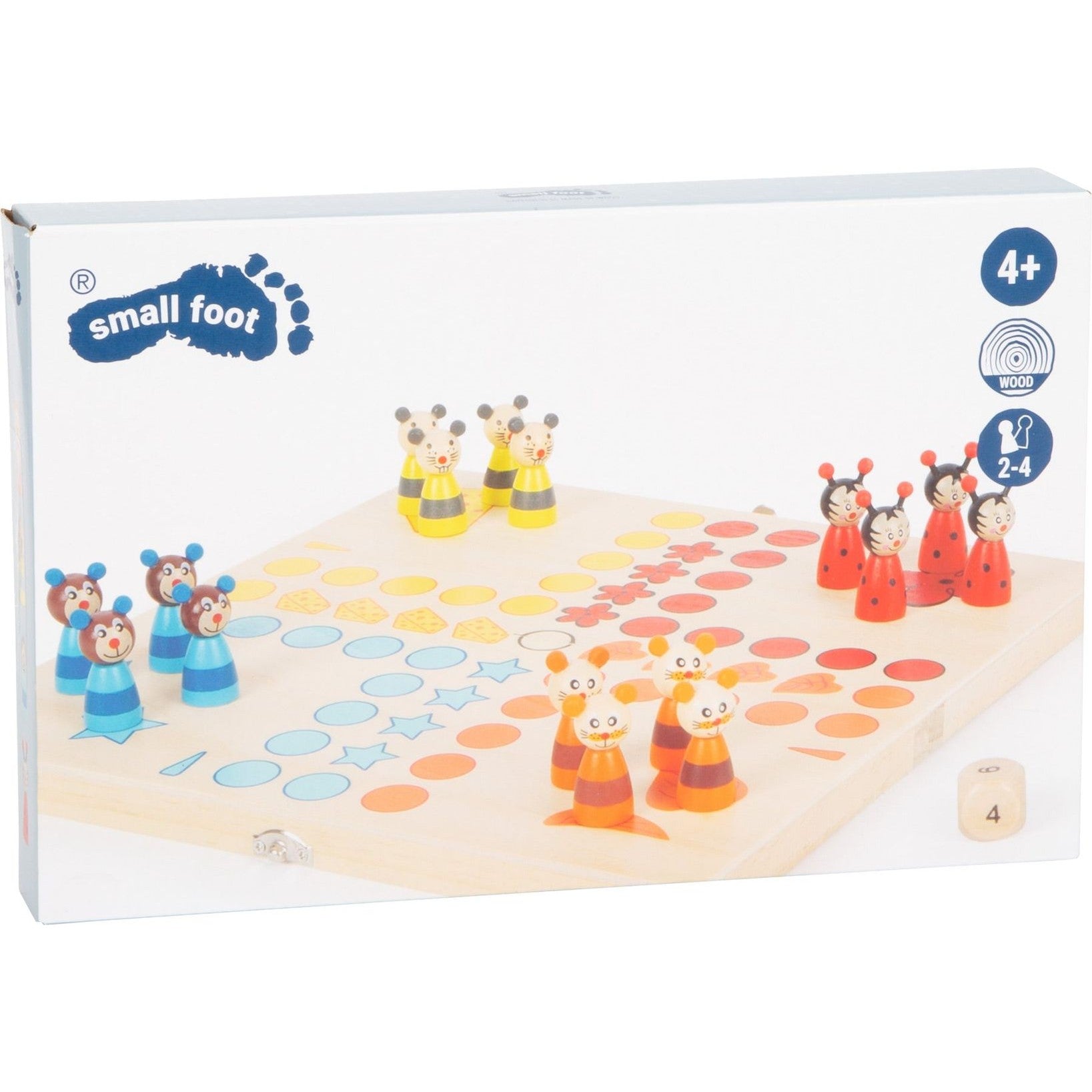 Klassisches Spiel in lustigem Design – hier bekommen die Spieler eine Beziehung zu ihren tierischen Figuren! Eine weitere Besonderheit: Der Würfel zeigt keine „Augen“ sondern Ziffern! Die Spielsteine und Würfel werden in der klappbaren Holzbox sicher verstaut.