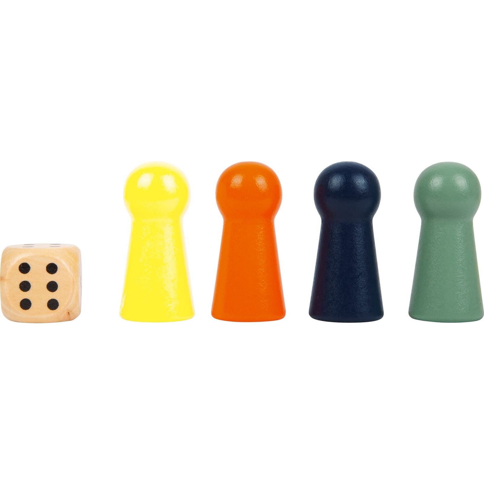 Ludo-Spaß im Großformat! Bei diesem Spieleklassiker aus Holz geht es darum, seine Spielfiguren als erstes ins „Häuschen“ zu bringen. Der Clou: Das extra große Spielfeld und die großen Spielfiguren machen es Spielern mit kleinen Händen oder unsicherer Handführung einfach, die Spielsteine zu setzen. Die runden Aussparungen sorgen dafür, dass alle Spielfiguren stabil stehen. Mit Stoffbeutel. Riesiger Spaß für die ganze Familie! Wer Glück hat, kann die gegnerischen Spielfiguren schmeißen und zurück an den Startpunkt befördern. Der Würfel und die 16 Spielfiguren in den Farben orange, gelb, blau und mintgrün können im mitgelieferten Stoffbeutel sicher verstaut werden. Dieser Spieleklassiker garantiert großen Spielspaß und darf in keinem Spieleschrank fehlen. Durchs Würfeln lernen Kinder spielerisch und ganz nebenbei das Zählen.