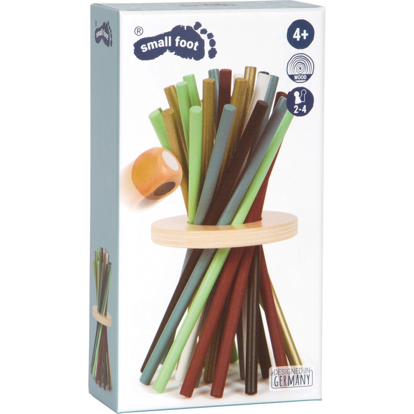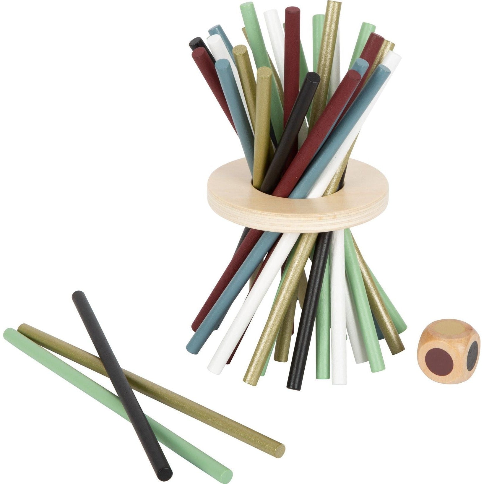 - 1 Würfel, 1 Spielring, 28 Spielstäbe