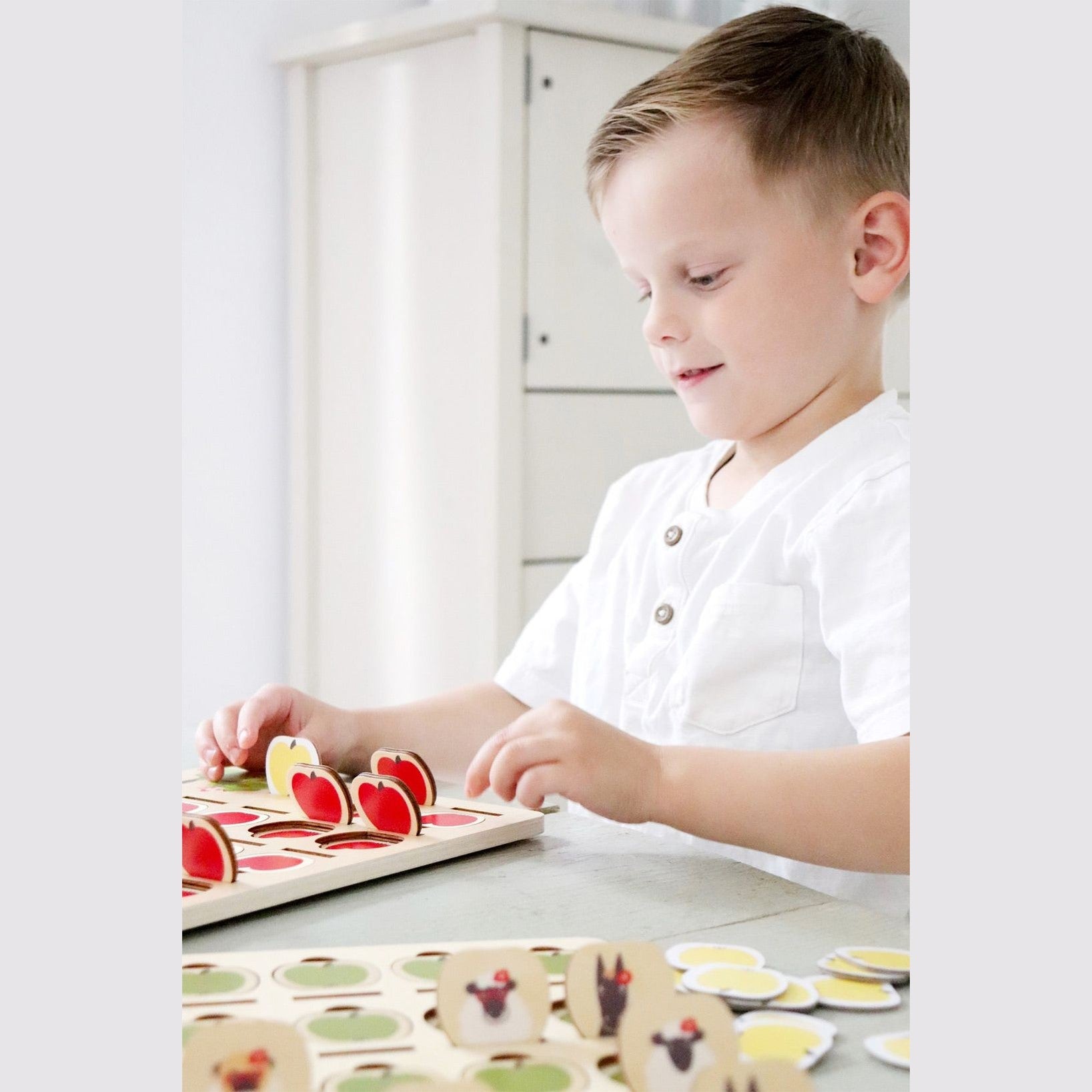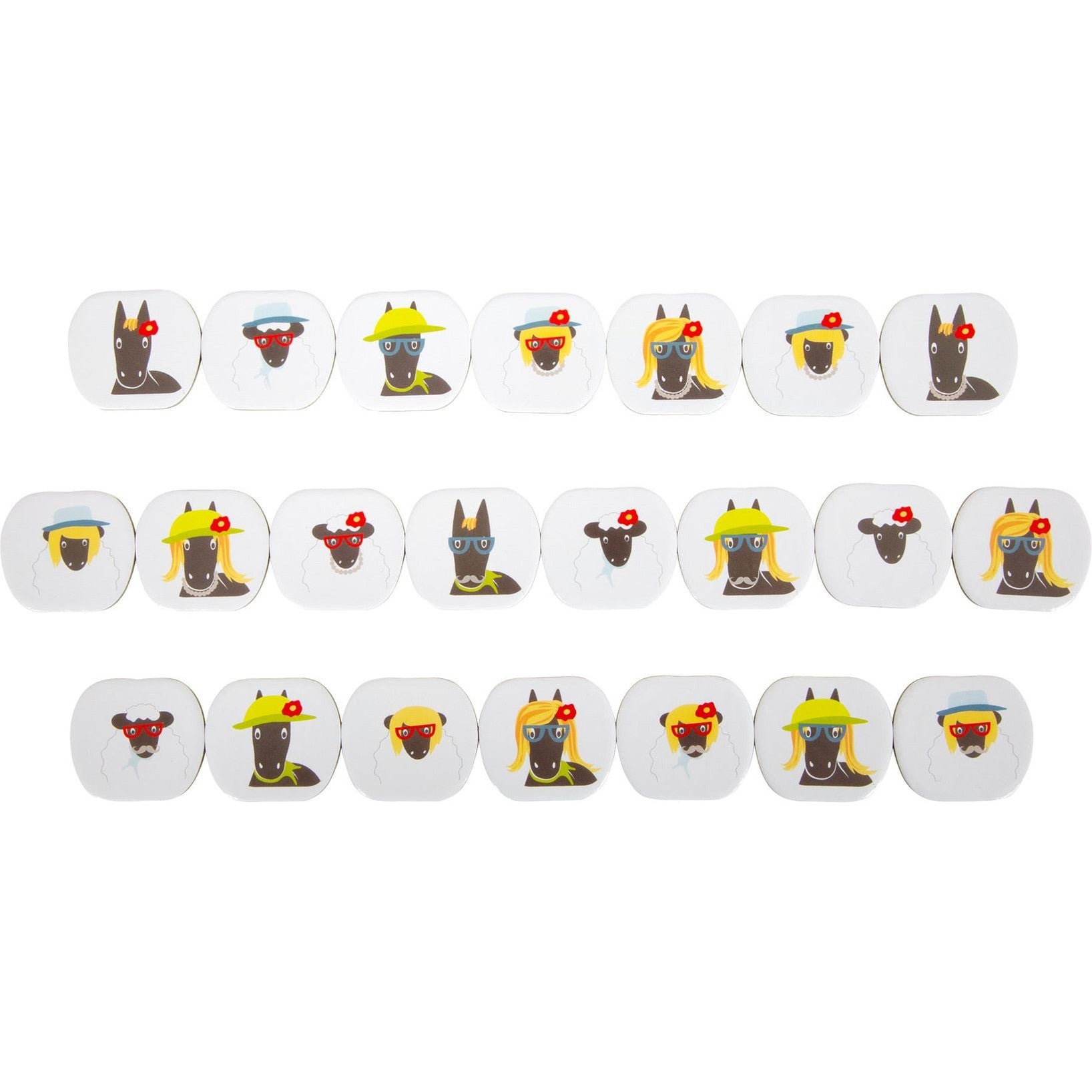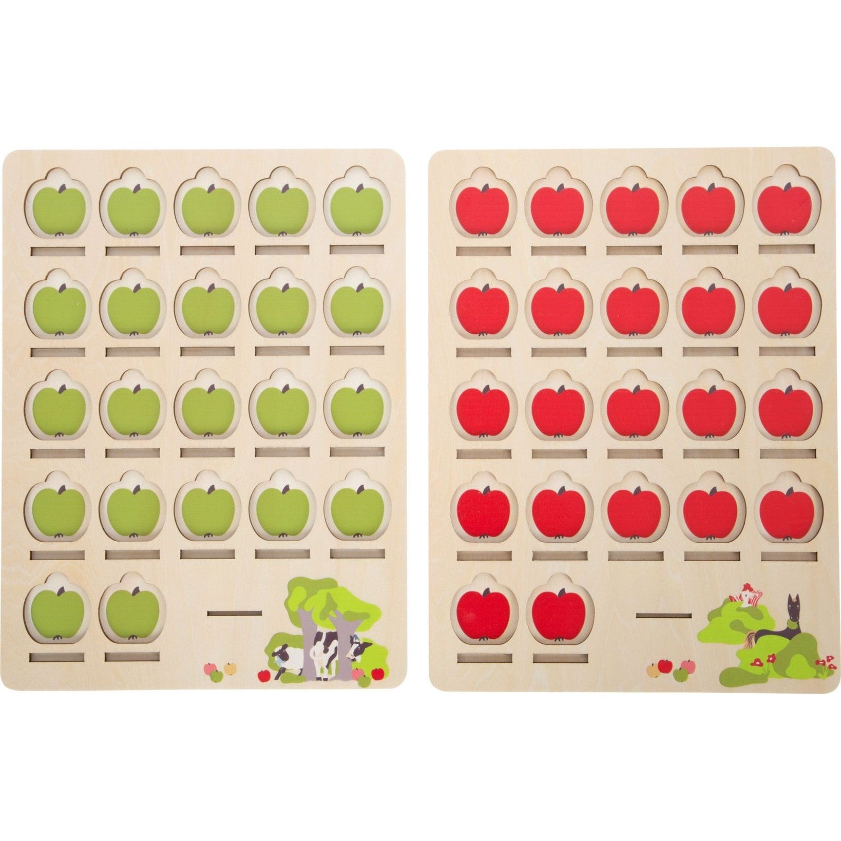 Wer hat die Äpfel gemopst? Bei dem beliebten Ratespiel für die ganze Familie ist eine gute Beobachtungsgabe wichtig, denn es gilt, mit geschickten Fragen die gesuchte Figur der „4 Friends“ schnell zu erkennen! Ein Spieleklassiker aus robustem Holz in besonders kindgerechtem Design! Mit zwei Spielbrettern zum Aufstellen der Rate-Plättchen und 22 Pappkarten zum Ziehen der zu erratenden Figur. 2-in-1: Das Knobelspiel ist auch als klassisches Memo zu verwenden! Mit hochwertigem Spielkarton zur Aufbewahrung. Olga die Kuh und Heinz der Hahn versuchen zu erraten, wer die Äpfel von der Weide stibitzt hat. Doch die beiden Verdächtigen haben sich zur Tarnung gut verkleidet! Das beliebte Fragespiel eignet sich ideal dazu, um mit Kindern das Thema Gemeinsamkeiten und Unterschiede spielerisch zu erörtern. Das Gesellschaftsspiel mit seinen sehr einfachen Spielregeln begeistert Klein und Groß gleichermaßen bei schnellen Spielrunden und fördert nebenbei Kombinationsfähigkeit sowie Konzentration.