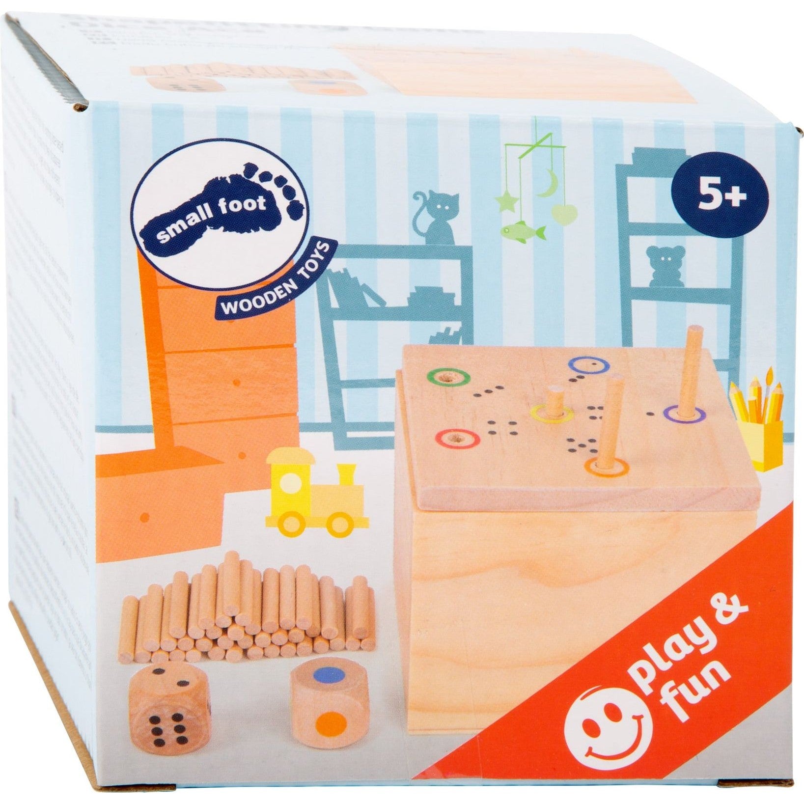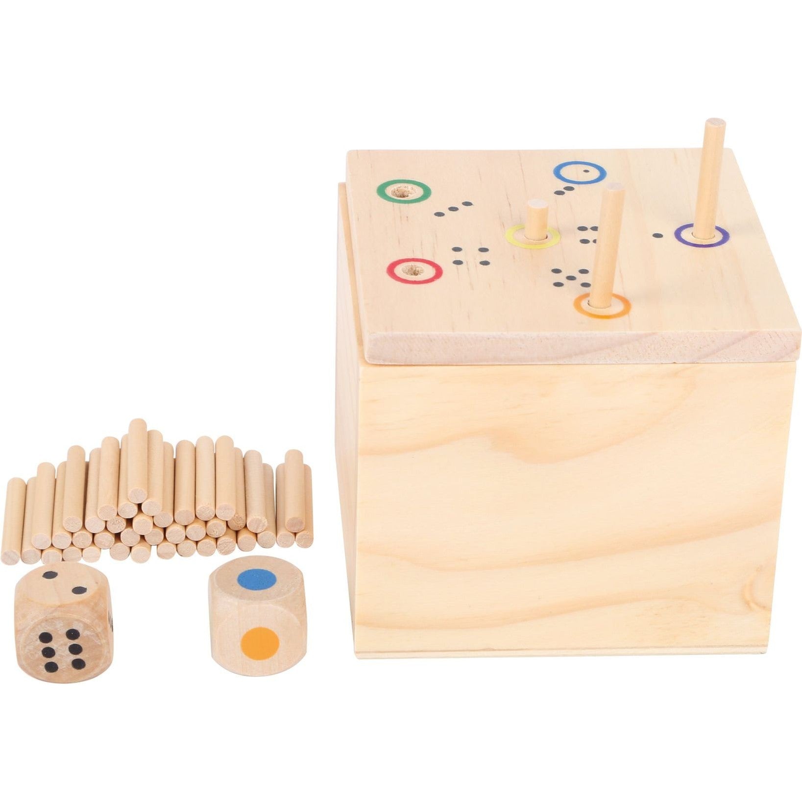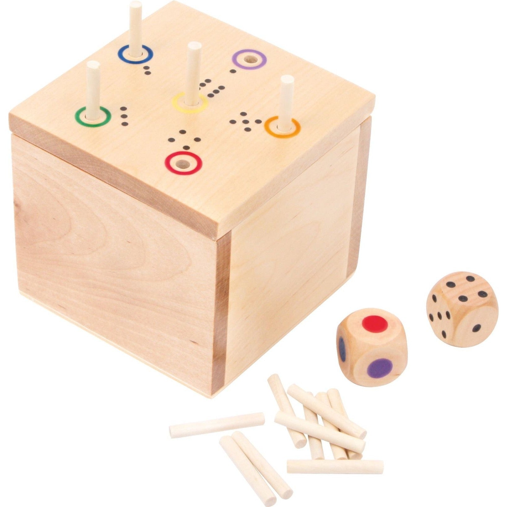 Ein aufregendes Steckspiel, bei dem Würfelglück gefragt ist! Bei diesem spannenden Würfelspiel gilt es, seine Holzstäbchen als erstes loszuwerden und in der Box verschwinden zu lassen. Das Besondere an diesem Spiel ist, dass es in zwei verschiedenen Varianten mit Farb- oder Augenwürfel spielbar ist. Das ermöglicht es auch kleineren Kindern mitzuspielen. Das Spiel sorgt nicht nur für Spannung und Spaß - ganz nebenbei wird durch das Hineinstecken der Holzstäbchen in die Box auch die Feinmotorik trainiert.